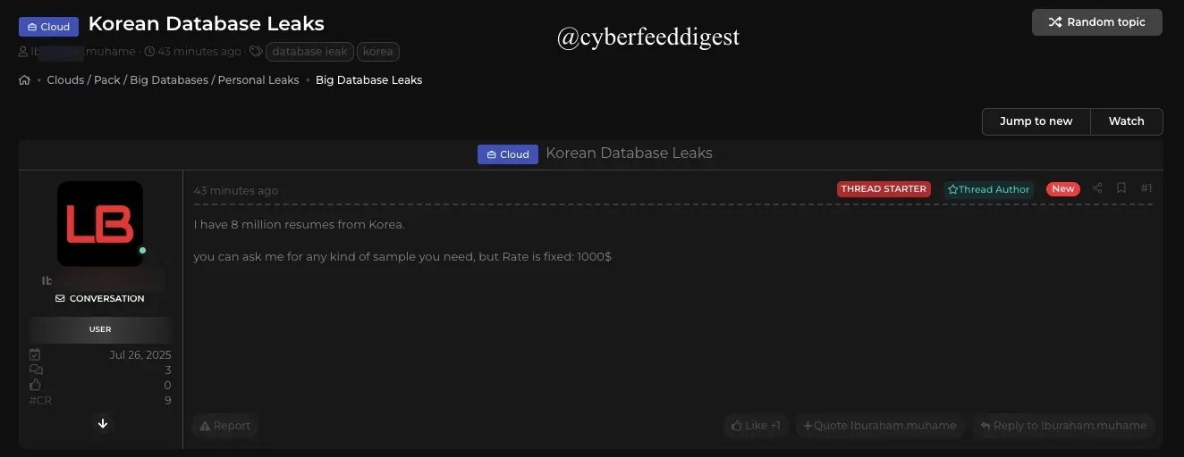 한국 이력서 800만 건, 다크웹에서 판매 중! 내 정보도? 2025년 7월, 취업 포털 해킹 추정. 유출 정보, 2차 피해 위험 및 지금 당장 해야 할 필수 대응책 총정리!